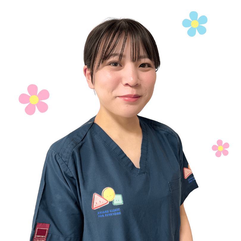 診察にきた子供達は不安でいっぱいです。不安を取り除く支援の第一歩として、子供達と親しくなるためにお話しすると緊張がほぐれ、ニコッと笑顔で、たくさんお話ししてくれたりご機嫌のままお帰りいただくことがあります。クリニックでは患者様と関わる時間が短いが、安心できる環境を提供できた時や仲良くなれ、信頼関係が作れた時がとても楽しいですし、子供達の笑顔が観れるのが幸せです。なので小児科の看護師ができて嬉しいです!